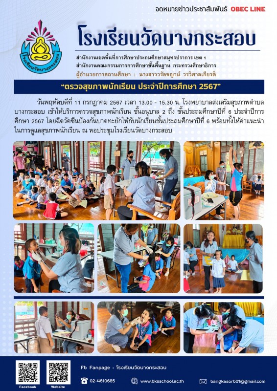 ตรวจสุขภาพนักเรียน ประจำปีการศึกษา 2567