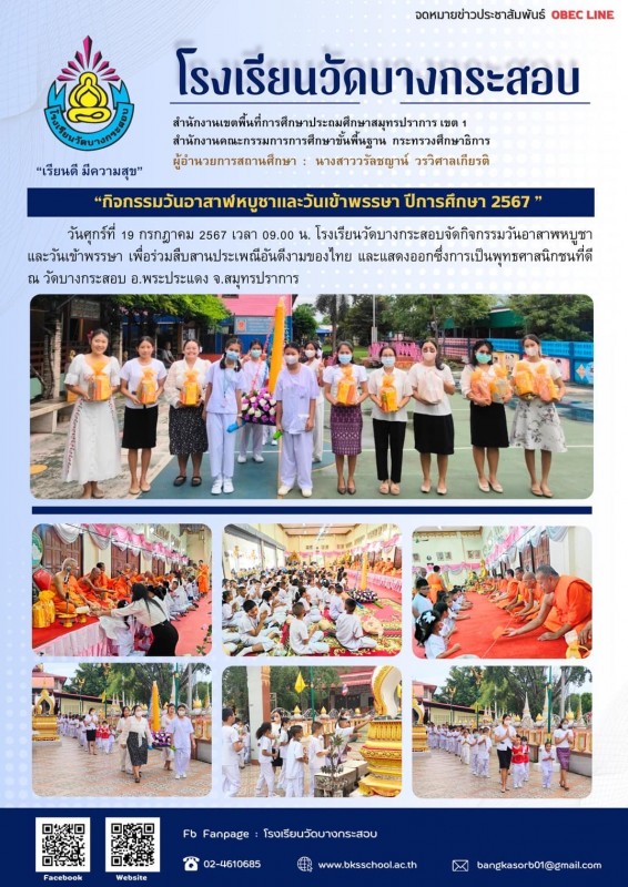 กิจกรรมวันอาสาฬหบูชาและวันเข้าพรรษา ปีการศึกษา 2567
