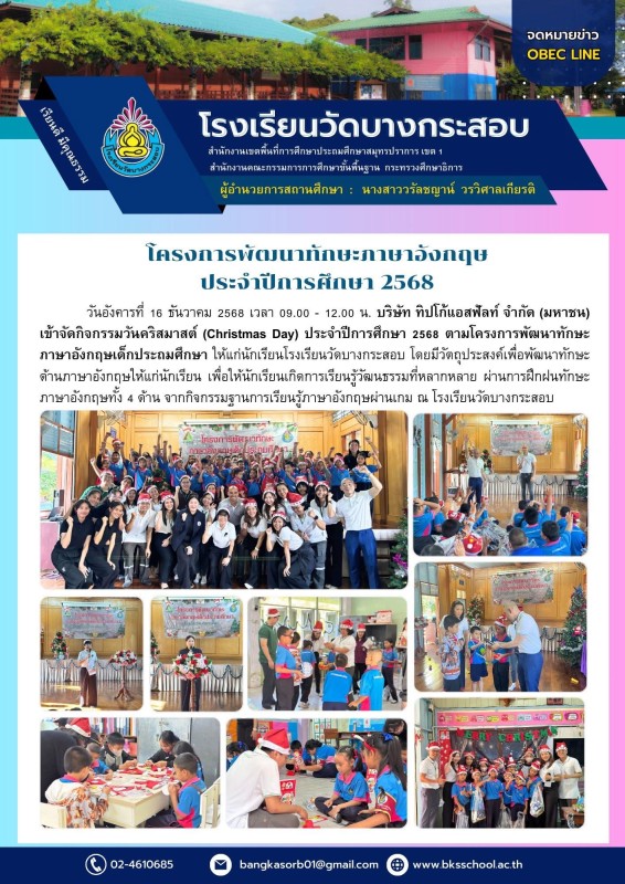 โครงการพัฒนาทักษะภาษาอังกฤษ ประจำปีการศึกษา 2568
