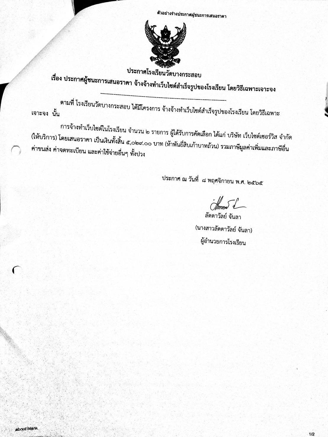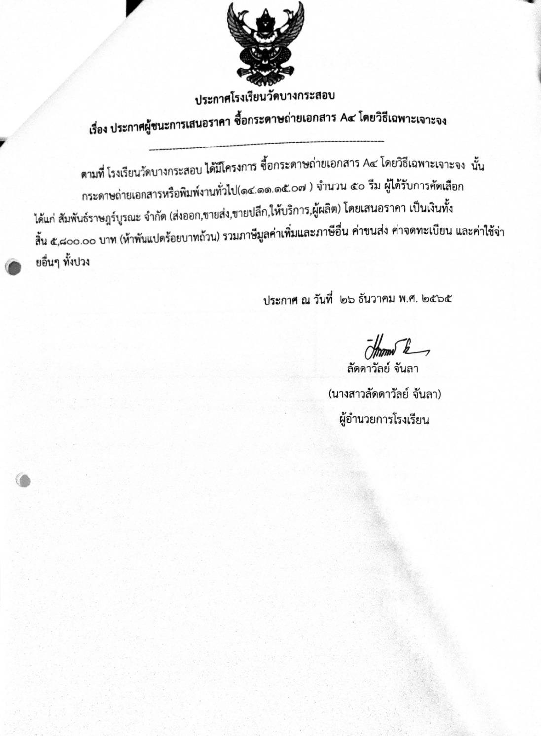 ประกาศต่างๆ เกี่ยวกับการจัดซื้อจัดจ้างหรือการจัดหาพัสดุ
