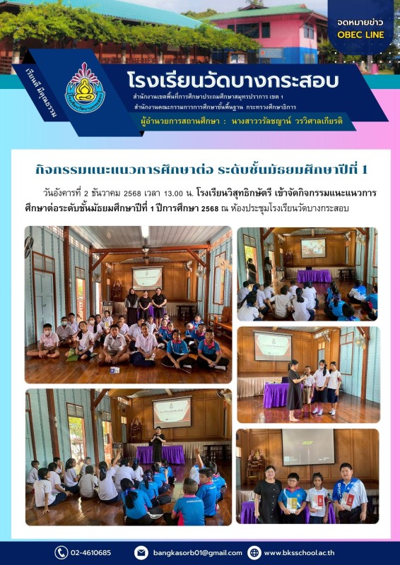 กิจกรรมแนะแนวการศึกษาต่อ ระดับชั้นมัธยมศึกษาปีที่ 1