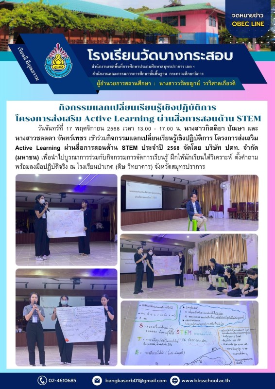 กิจกรรมแลกเปลี่ยนเรียนรู้เชิงปฏิบัติการ โครงการส่งเสริม Active Learning ผ่านสื่อการสอนด้าน STEM