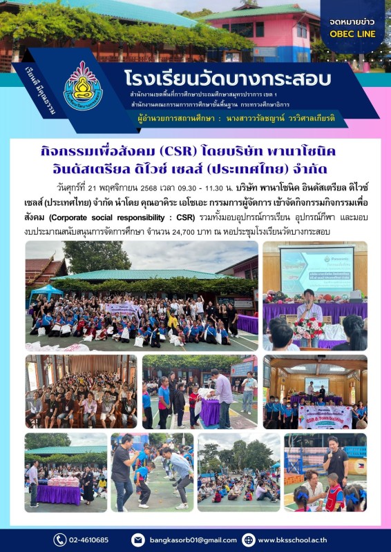 กิจกรรมเพื่อสังคม (CSR) โดยบริษัท พานาโซนิค อินดัสเตรียล ดิไวซ์ เซลส์ (ประเทศไทย) จำกัด